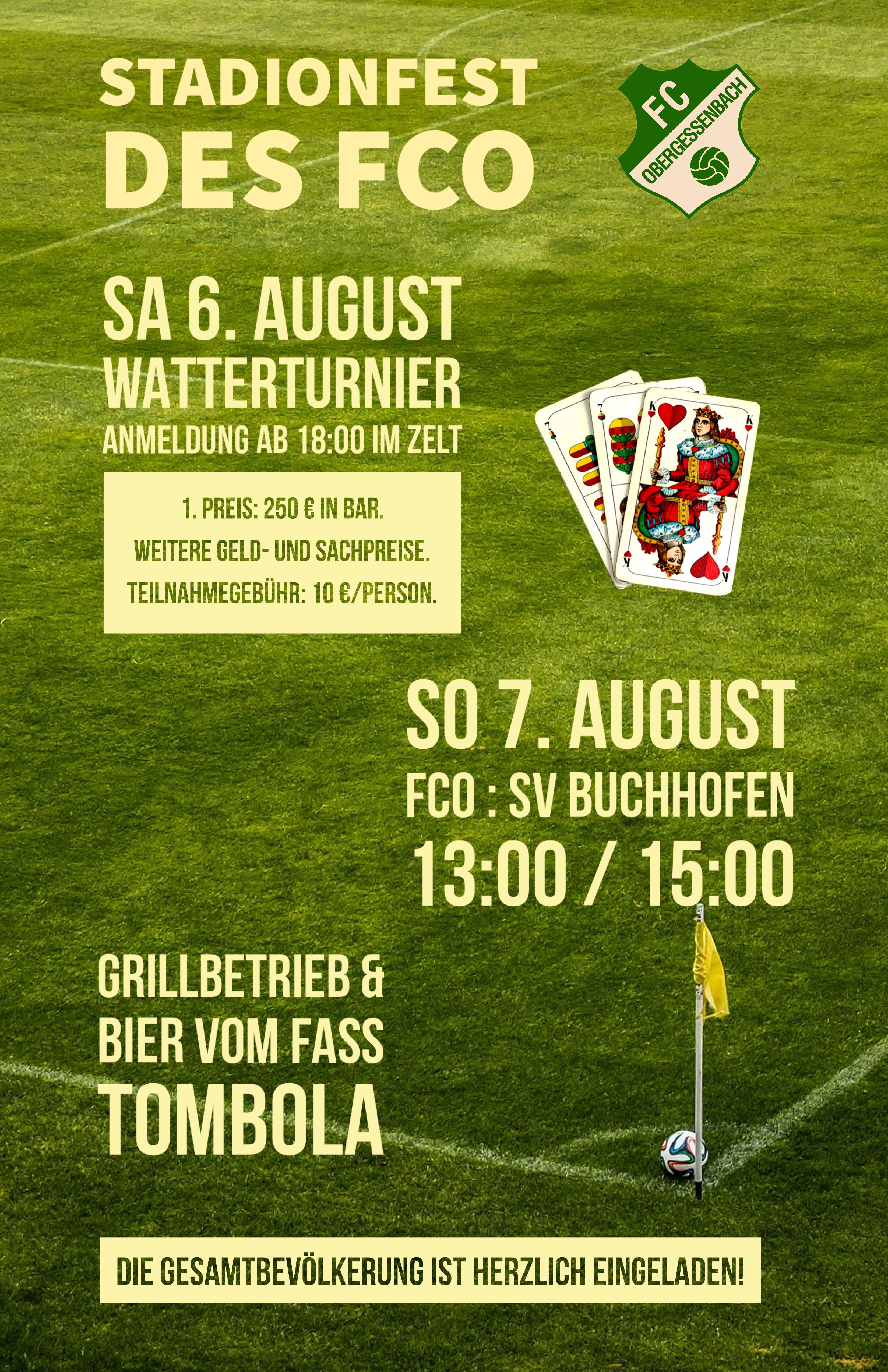 Der FCO feiert sein Stadionfest am 6. und 7. August, mit einem Watterturnier und den Heimspielen gegen den SV Buchhofen. Dazu wird neben dem Vereinsheim ein Zelt aufgestellt, in dem zu einem gemütlichen Beisammensein eingeladen wird.